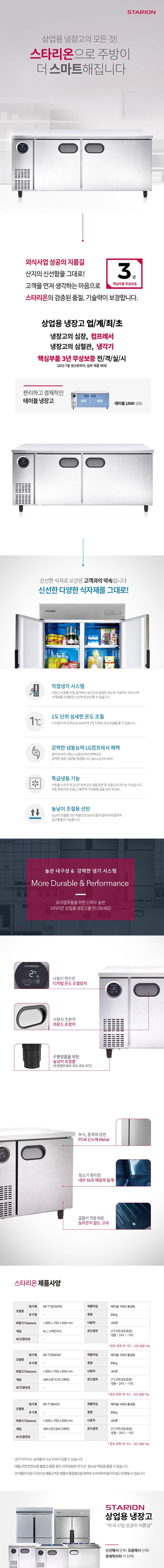 SR-T18DIEMC 유버스 [스타리온] 직냉식 1800 테이블 냉동고 465L 내부스텐 제품분류 업소용 용량(총량) 400L이상 기능 2도어 AS기간 1년 최저 렌탈가 월 51,200 (렌탈가) 제휴카드 할인가 월 (렌탈가) 3년 4년 5년 할인 제휴카드 보기 렌탈신청 장바구니